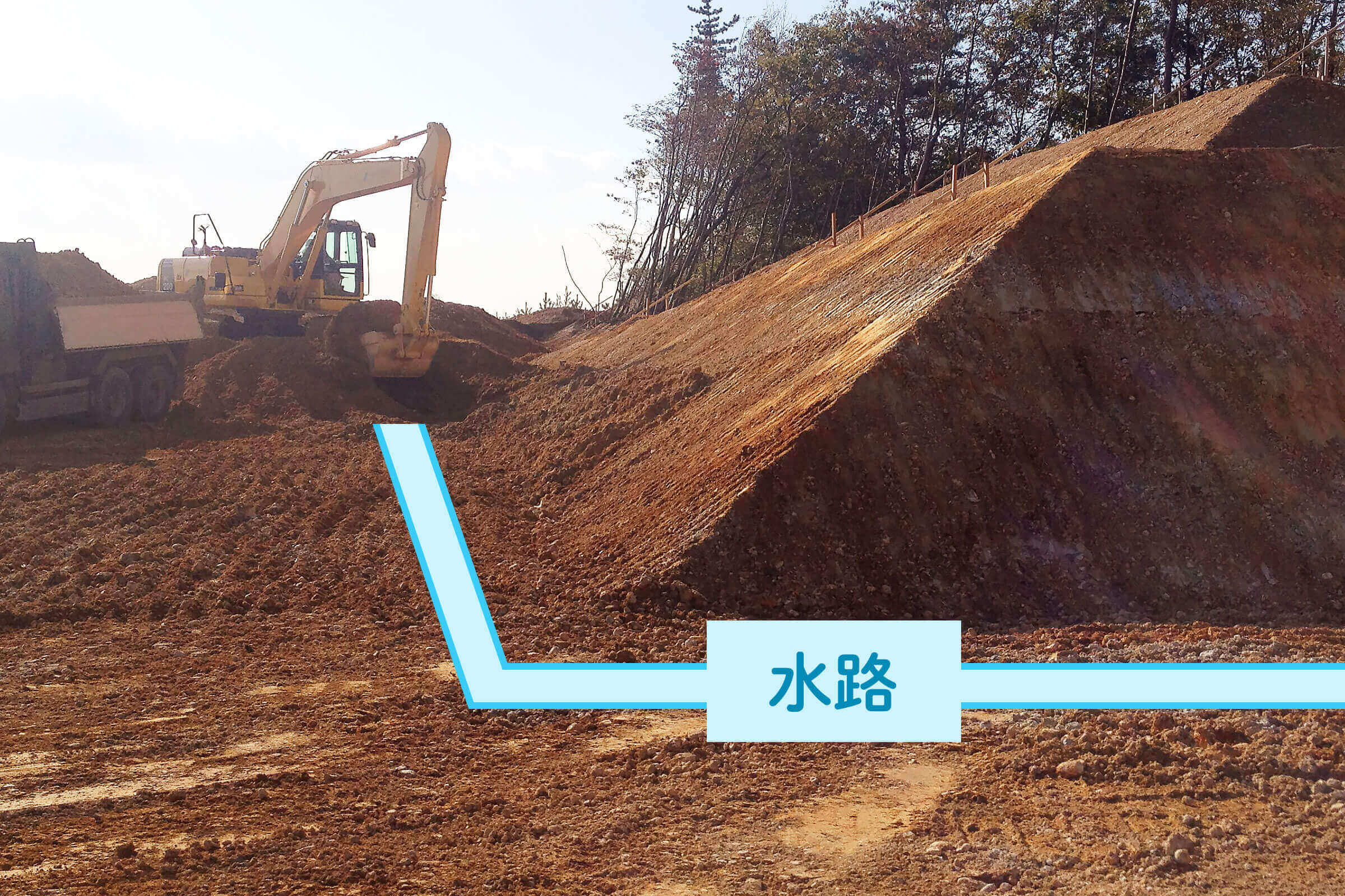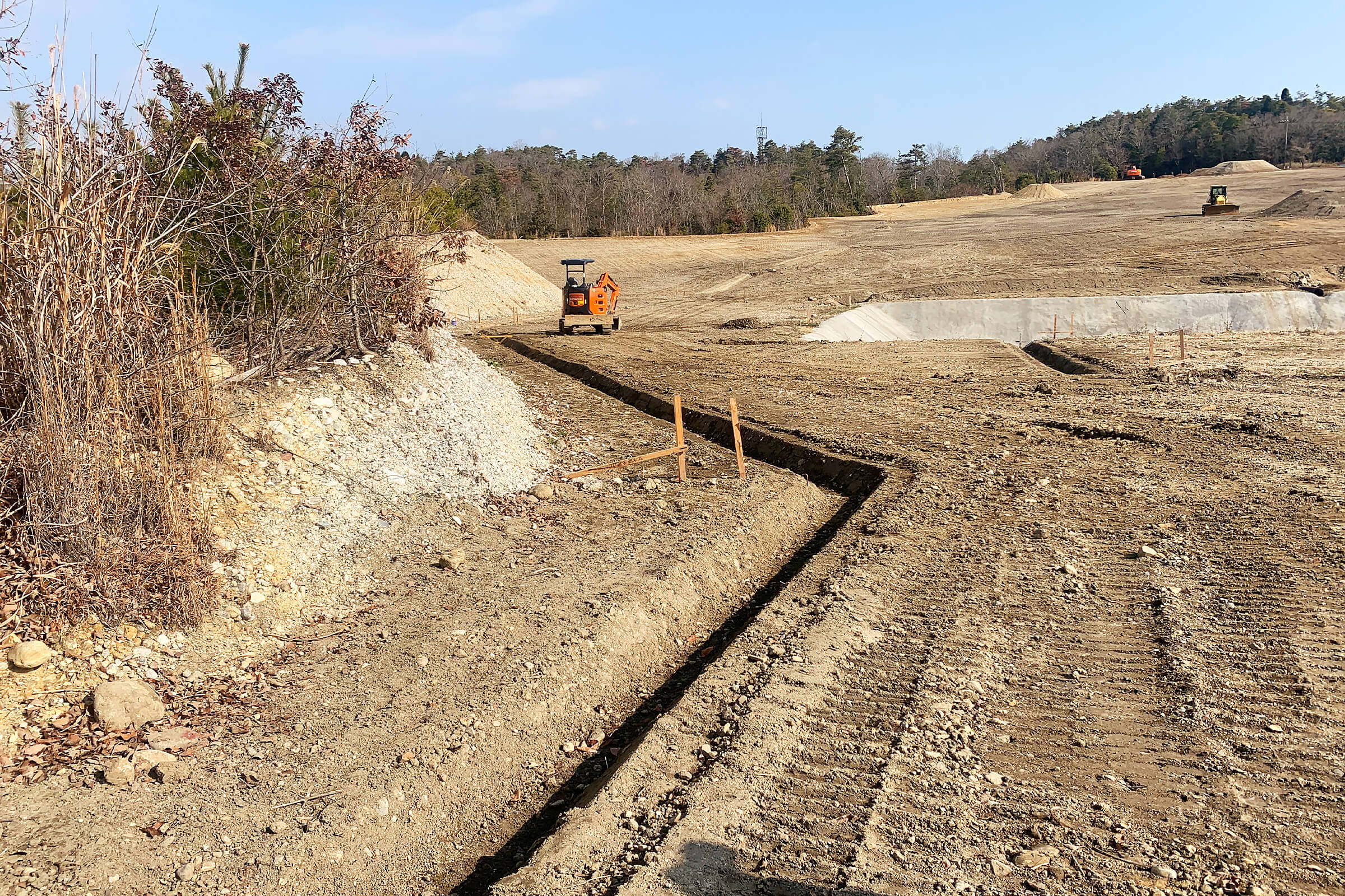 法面の安定化を目的に盛土の材料として残土を受入れ造成工事をいたしました。
