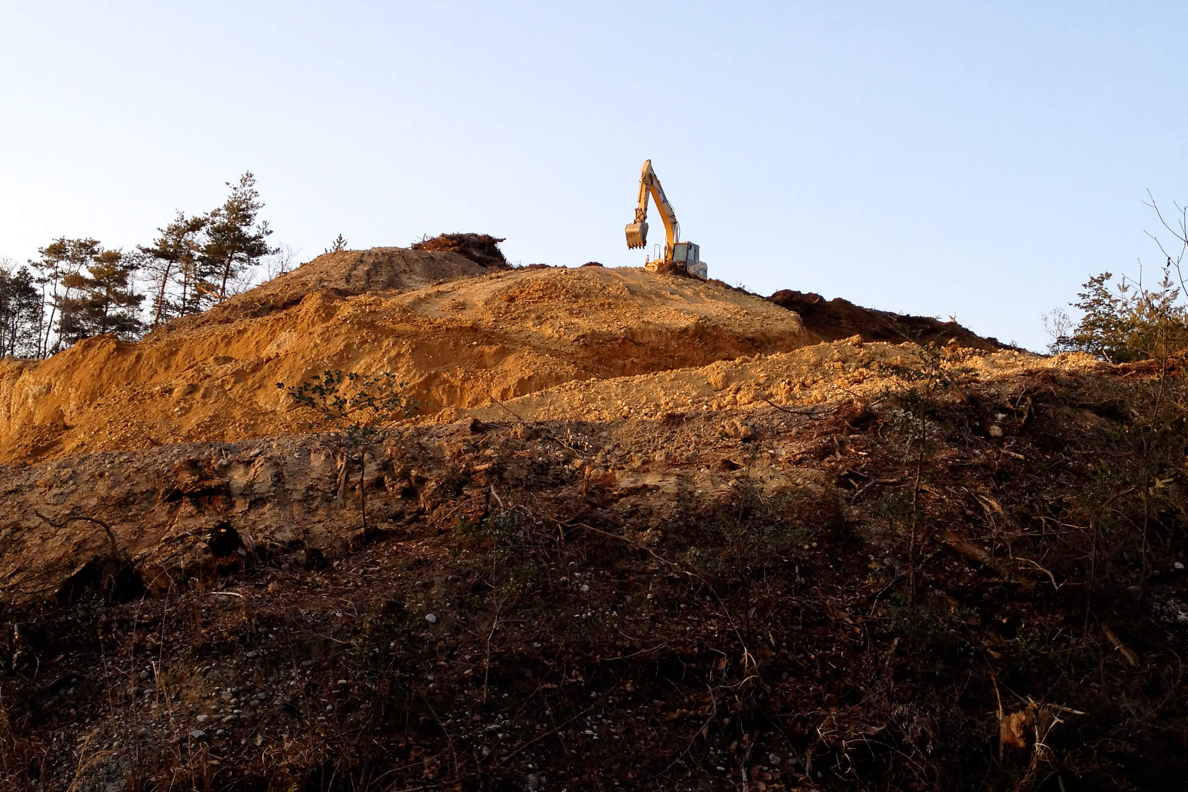 山林が崩れている事などの理由で土砂災害危険区域に指定された危険な山を低くする事で、より安全に成りましたと現場周辺の住民の方々から感謝の言葉を頂いております。弊社の施工現場では、これ迄大きな問題や住宅地からの苦情は無く、大雨等の二次災害発生防止を徹底とし地域への配慮に努めています。また、地域貢献に繋がる様な設計計画を心がけ危険箇所の改善に役立てます。雨水処理施設の設置を慎重に行い、行政指導に基づく調査を行い環境や周辺への影響に配慮、法律に基づき現場業務管理者を配備し現場及び現場周辺の安全及び災害防止に努めています。