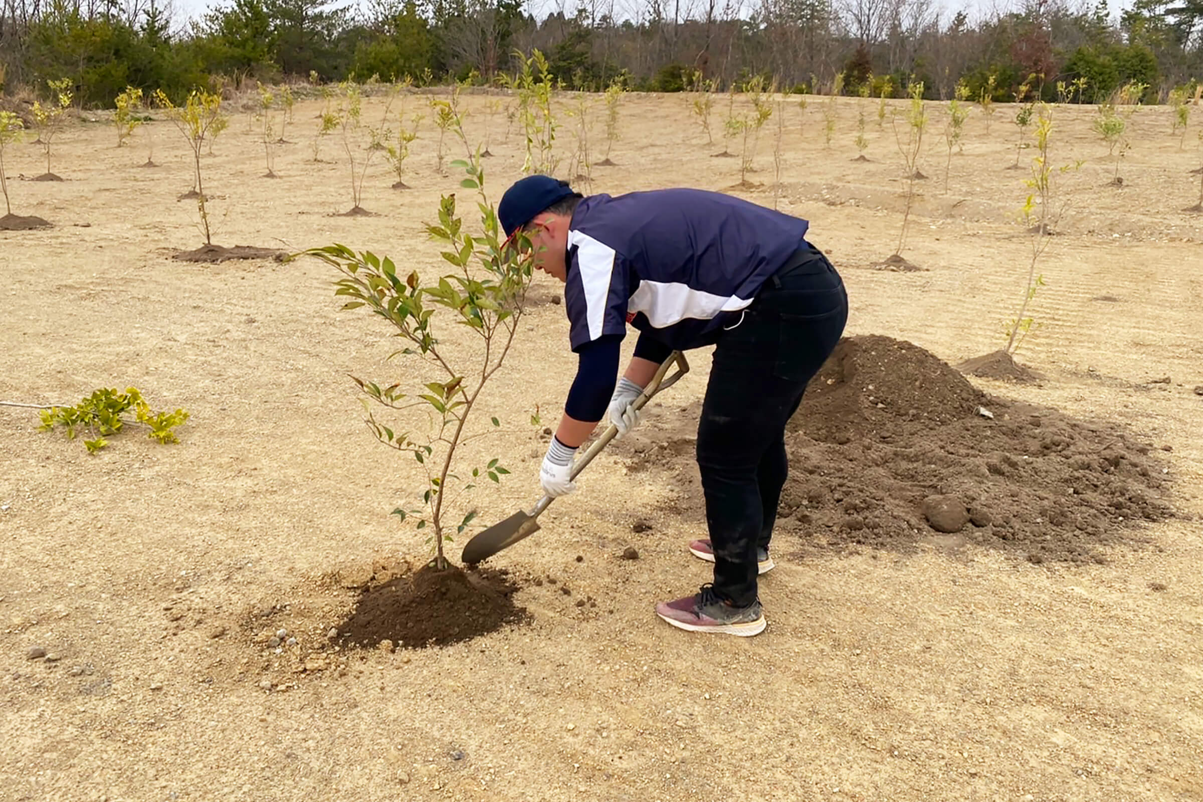 植栽計画平面図に従い樹木等を植栽して山林回復をいたしました。